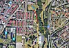 Gul = gangvei med lys. Rød er gangvei uten lys. Blå er akebakke og skilekområdet på Ola Narr.Kartutsnitt fra google maps