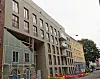 Fasaden på Mariboes gate 14-16 bærer preg av byggearbeider.Foto: Christian Boger