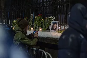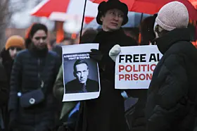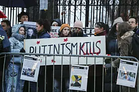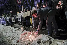 Demonstrasjon ved Russlands ambassade i forbindelse med dødsfallet til den russiske opposisjonspolitikeren Aleksej Navalnyj.Foto: Frederik Ringnes / NTB