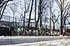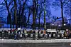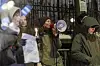 En lang rekke med demonstranter og plakater utenfor Russlands ambassade.Foto: Frederik Ringnes / NTB