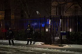 Politiet holder vakt utenfor ambassaden.Foto: Frederik Ringnes / NTB