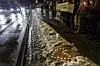 Idet det begynte å mørkne, var fortsatt et titalls mennesker samlet.Foto: Frederik Ringnes / NTB