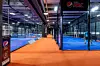 De aller fleste banene krever at man er fire stykker som spiller sammen. Til høyre den eneste single-banen på anlegget.Foto: Nordic padel