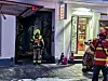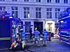 Brannvesenets mannskap inne i andre etasje i bygningen der det var kommet inn røyk etter brannen i bakgården like ved.Foto: Petter Terning