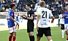 Dommer Sivert Øksnes Amland og VAR-teamet kom i søkelyset under søndagens eliteseriekamp mellom Odd og Vålerenga. Her diskuterer hoveddommeren med VIFs Magnus Bech Riisnes.