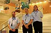 Tre av deltakerne fra Nyttig arbeid som jobber på Rådhuset. Til venstre står Alf Hansen.Foto: Ingrid Skjellevik