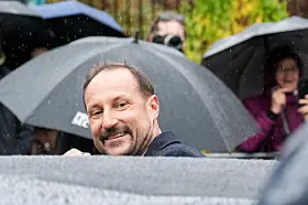 Kronprins Haakon på plass i regnet i Gamlebyen.Foto: Javad Parsa / NTB
