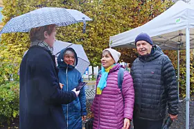 Naboene strømmet ut i regnet under avdukingen av monumentet over Dronning Ellisiv av Kyiv på Harald Hårdrådes plass i Gamlebyen. – Vi er stolte av at en ukrainer blir hyllet i nærområdet vårt.