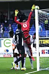 Harde dueller foran KFK-keeper Mbaye, som får fistet til hjørenspark.Foto: Ned Alley / NTB scanpix