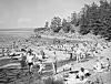 I folkemengden på Ingierstrand Bad var det mulig å diskret få kjøpt en flaske med brennevin. Foto: Nasjonalbibliotekets bildesamling