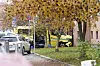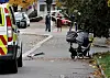 Den kaprede ambulansen krasjet inn i portrommet til Tysklandgården i Krebs gate på Torshov. Rett etterpå ble 33-åringen pågrepet av politiet.Foto: Håkon Mosvold Larsen / NTB