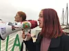 Margrethe Lahnstein og Ingeborg Stang Christiansen (med mikrofon) sier fra hva de mener om manglende ivaretakelse av Oslofjorden.Foto: Natur og Ungdom