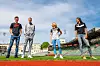 Fra venstre; brødrene Jakob og Filip Ingebrigtsen, Therese Johaug og Amalie Iuel under Bislett Alliansens pressekonferanse om Impossible Games på Bislett stadion i Oslo tirsdag.