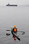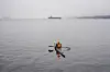 Denne kajakkpadleren fikk god utsikt til gigantskipet.Foto: Terje Pedersen / NTB