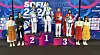 Amina Hammich poserer stolt med bronsjemedaljen på pallen.Foto: Privat