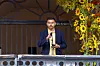 Marius holdt tale for titusener av mennesker i rosetoget for Tamima.Foto: Javiera Ansaldo