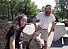 Byråd for miljø og samferdsel, Arild Hermstad (MDG) får hjelp til å plante oregano av Mathias Storm Michelsen. Foto: Stina Maria Lindholm