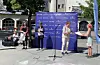 Fire unge kunstnere fra Oslo fikk utdelt prisen av ordfører Marianne Borgen (SV) utenfor Schous Kulturbryggeri.