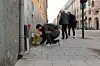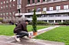 Mange nysgjerrige blikk når den spanske kunstneren Ampparito plantet sine opp-ned planter. Foto: Henrik Haven