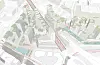 Det legges til rette for en større mobilitetshub med blant annet sykkelhotell, -vask, og -verksted, taxiholdeplass og bildeling