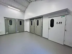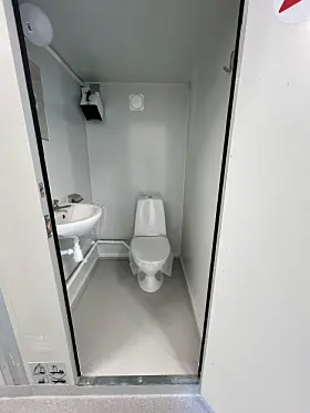 Nå er det røde bygget nemlig ferdig omgjort til splitter nye toaletter.