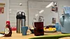 Hun serverer både kaffe, lapper og frukt til dem som kommer,
