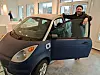 Steffen Kalve starter floppemuseum i Barcode, og viser her på søndag stolt frem Think-elbilen han og pappa Olav fraktet fra Tønsberg til Oslo samme dag.Foto: Tarjei Olsen
