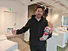 Steffen Kalve med en flaske med Crystal Pepsi i den ene hånden, en Google Stadia-kontroller i den andre og den forbudte 'Cayladukken' trygt i armkroken.Foto: Tarjei Olsen