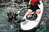 Poden samler inn søppel som ligger og flyter på overflaten av vannet.Foto: Johannes Hellstrand Frøshaug