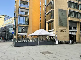 På Hambros plass, rett ved Tinghuset, ligger César Bar & Café.Foto: Juna Mjøen