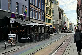 området rundt Rosenkrantz' gate; London Pub (og London Club) og César Bar og