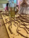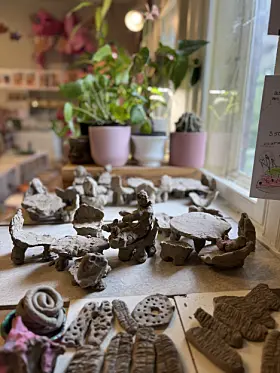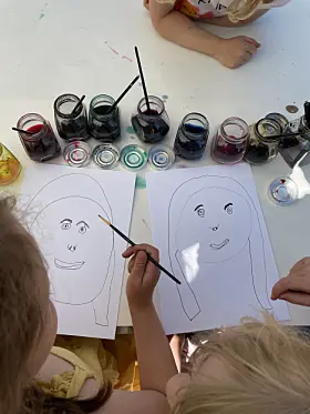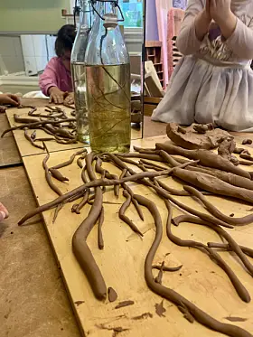 pensler. Når de kommer til seksårsalderen har barna tilgang på et atelier, leireverksted