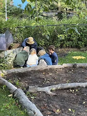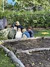 stor kjøkkenhage, hvor barna kan dyrke grønnsaker og poteter og hvor de henter