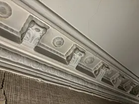 Bak overflater, senkede tak og nyere påbygginger fant hun spor etter byggets tidligere liv: gamle romskiller, flere lag med tapet, panel, mur, lister og rosetter i taket.