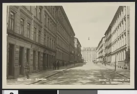 Her fotografert på 1920-tallet. Plan- og bygningsetaten ønsker å bevare næringslokaler på bakkeplan for å ivareta byens funksjonsblanding.Foto: Thorleif Wardenær / Nasjonalbiblioteket