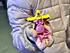 Seksåringen holder stolt opp en figur av Prinsesse