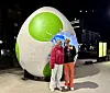 To andre som stopper opp ved kjempeegget etter å ha sett den