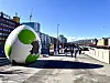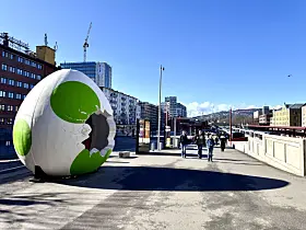 Et kjempestort egg med grønne prikker har tiltrukket seg oppmerksomhet ved Majorstuen T-banestasjon.