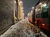 Fortauet har i lang tid vært skummelt, påpeker Hanna Geiran. Her tok hun et bilde i det bussen suste forbi det smale fortauet en vinterkveld, før rekkverket ble satt opp.Foto: Hanna Geiran