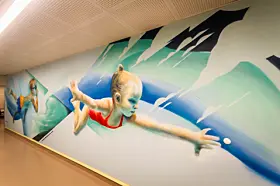 Fargene er valgt med omhu: varme og lekne toner som også gjør verket mindre utsatt for tagging.