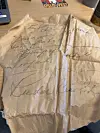 Den gamle brevskriften på brunt papir, som går over to sider, oppbevart i en Old Brandy-flaske, har av OBOS-ansatte blitt tolket til å være som følger: