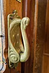 Dørhåndtaket i messing er prydet av en svane.Foto: Pixel