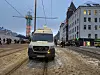 En av Sporveiens biler ved Jernbanetorget i forbindelse med arbeidet med å finne strømstøtårsak.Foto: Petter Terning