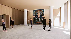 Vanessa Bairds maleri får plass i A-blokka.Illustrasjon av Statsbygg