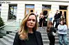 Mari Slaattelid maler direkte på en stor betongvegg i det nye regjeringskvartalet.Foto: Jan Khür
