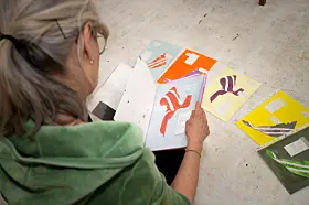 til A- og D-blokkene er Mari Slaattelid. Hun har malt en frise direkte på
