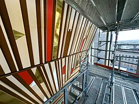 Montering av Damla Kilickirans kunstverk på fasaden av A-blokka.Foto: Trond A. Isaksen
