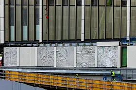 Damla Kilickirans ti relieffer «Sites of a Breach, Delays in a Dream; A Surface Half Asleep» på A-blokka.Foto: Trond Isaksen / KORO