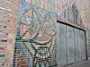 Mosaikken er basert på figurfragmenter av den tysk-norske kunstneren Rolf Nesch, kjent for sine ekspresjonistiske grafiske arbeider.