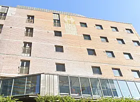 Fasaden er dekorert med en 200 meter lang mosaikk laget av 400.000 glaserte teglstein.